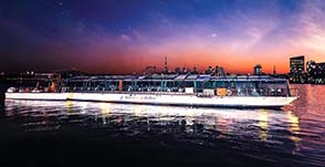 Проведите незабываемый вечер на борту Bateaux Dubai, где изысканная кухня à-la-carte сочетается с фирменными достопримечательностями, живой музыкой и первоклассным обслуживанием. Наш шеф-повар творчески сочетает международные вкусы в меню из четырёх блюд, которое дополняется эксклюзивным выбором напитков. Ночью оживленный Дубай - это красивое зрелище, и вы можете увидеть сверкающий горизонт Дубая во всей красе.